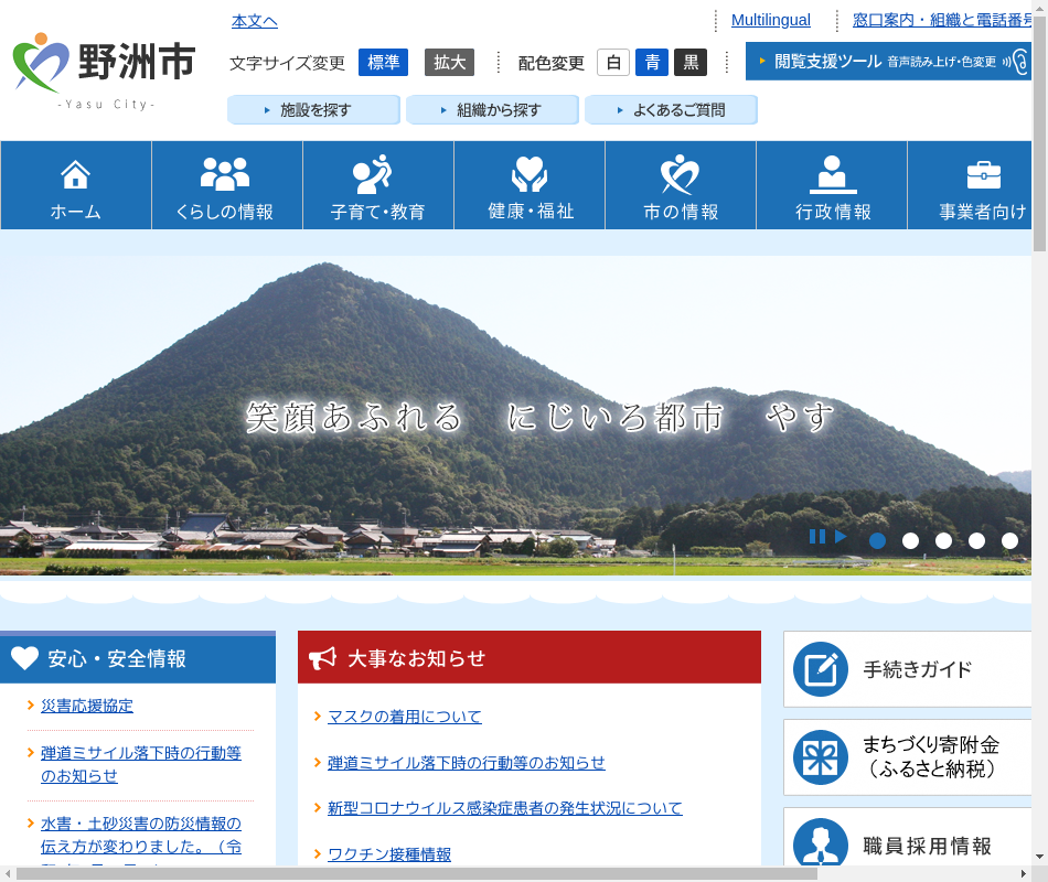 | 事業内容 | 地方自治法に基づく地方公共団体として、高島市における財務、税務、市民生活、環境、防災、保健、福祉、農林水産、商工観光、都市整備などの分野に関する行政事務を取り扱います。 |