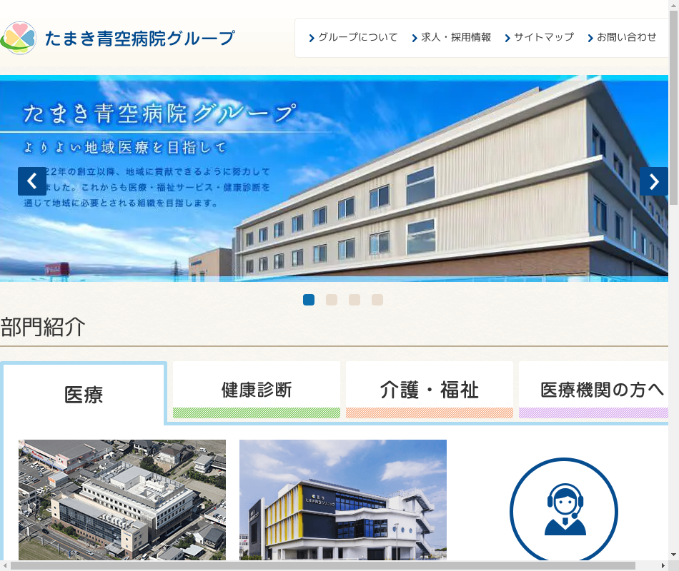 | 事業内容 | *外科・内科・整形外科・小児科*放射線科・健診センター*臨床検査科・薬剤部 |
