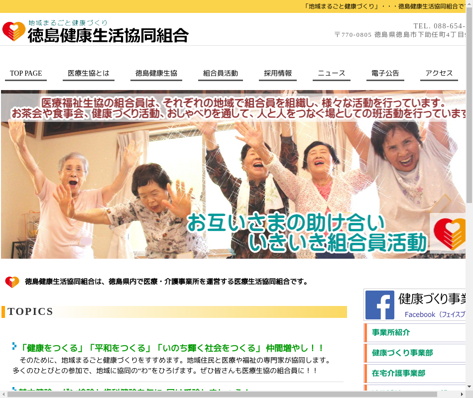| 事業内容 | 生協法に基づいて設立された生協法人で、医療・介護事業所を運営。医療生協の健康観を軸に、健康予防活動に力を入れています。現在健生病院を中核に14の医療・介護事業所等を県下に展開 |