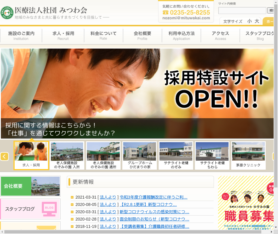 | 事業内容 | 老人保健施設のぞみの園・茅原クリニック・サテライト老健のぞみ・サテライト老健ちわら・グループホームひだまりの家・ケアプランセンターひだまり・のぞみの園訪問介護・のぞみの家 |