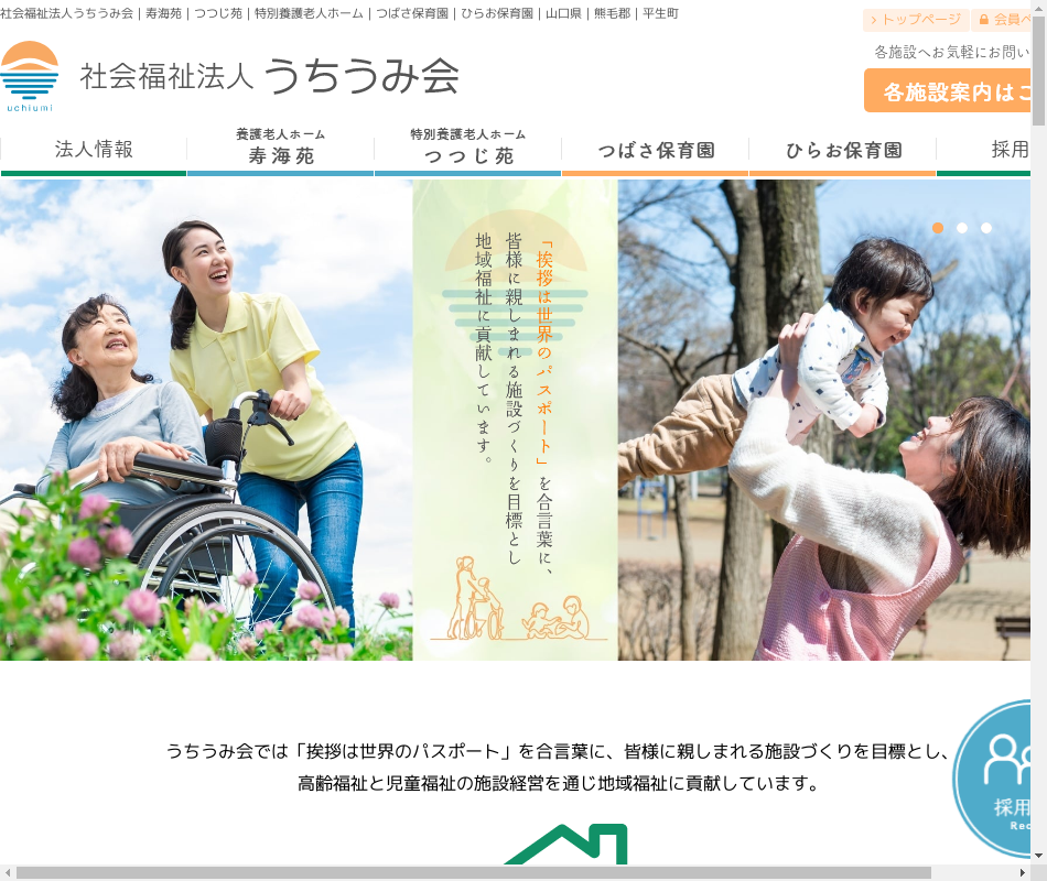 | 事業内容 | 養護老人ホーム寿海苑特別養護老人ホームつつじ苑つばさ保育園 ひらお保育園 |