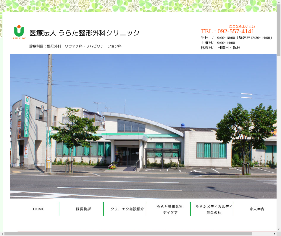 | 事業内容 | 一般外来整形外科・リハビリテーション科クリニック。デイケアを併設。働きやすく、外来日勤のみ診療。是非、当院ホームページをご覧下さい。 |
