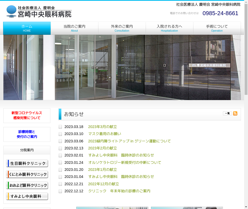| 事業内容 | 眼科、内科、整形外科、耳鼻咽喉科、脳神経外科、リウマチ科、リハビリテーション科【厚生年金:特定適用事業所】 |