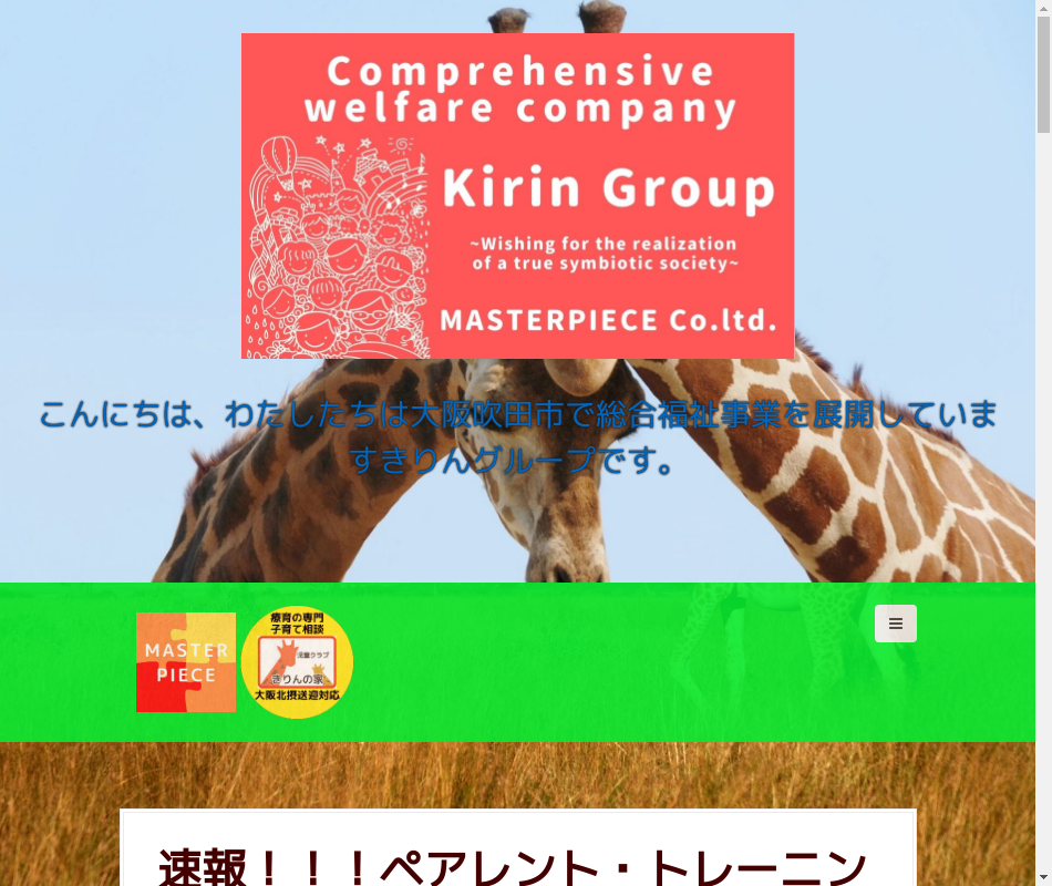 | 事業内容 | 総合福祉事業を展開するきりんグループです。訪問介護・居宅重度訪問介護、児童発達支援/放課後等デイサービス、就労継続支援A型事業、高齢者配食サービス「配食のふれ愛北摂本店」を運営。 |