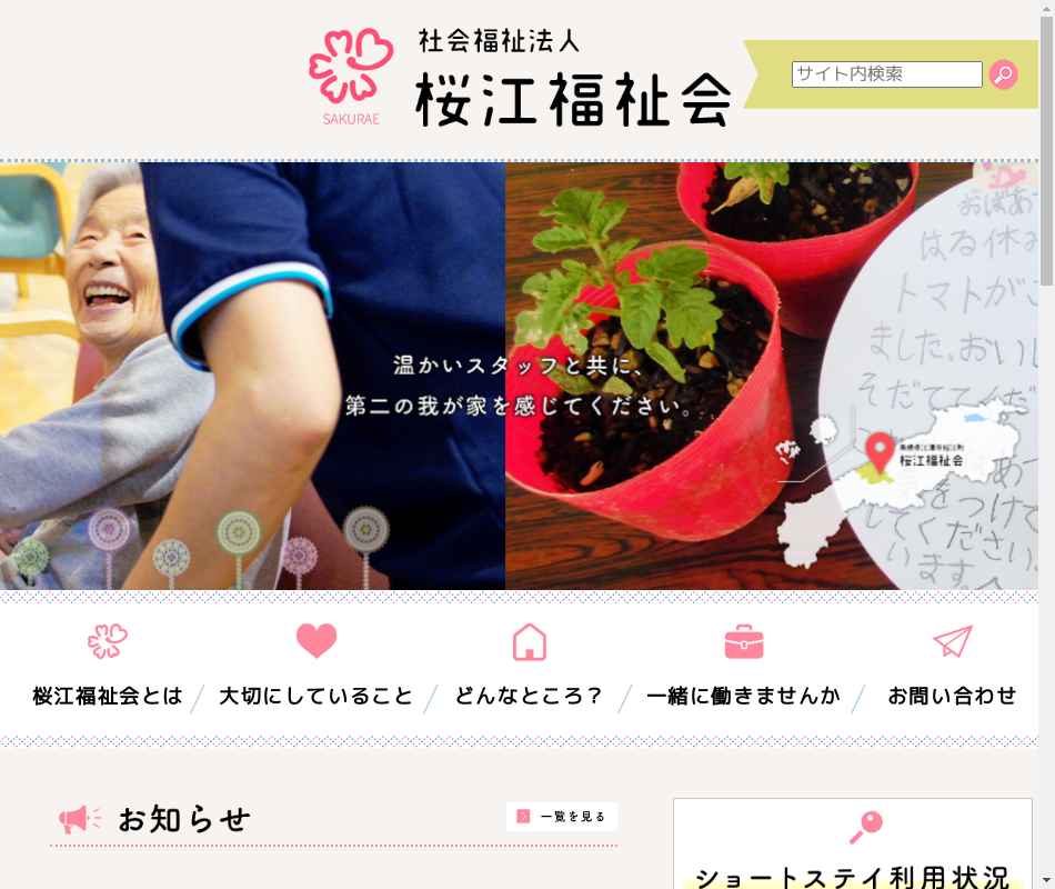 | 事業内容 | 特別養護老人ホーム、老人デイサービス事業・老人居宅介護事業・老人短期入所事業・認知症高齢者グループホーム事業・訪問介護事業 |