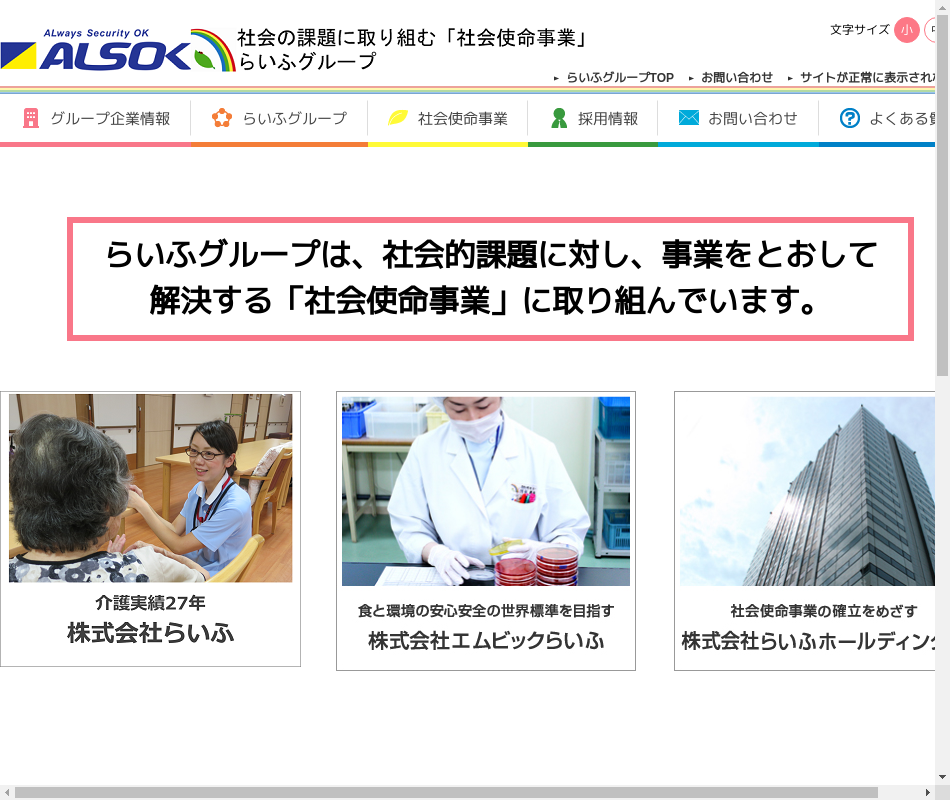 | 事業内容 | 特別養護老人ホーム・高齢者在宅サービスセンター・訪問看護ステーション・グループホーム・サービス付き 高齢者向け住宅 |