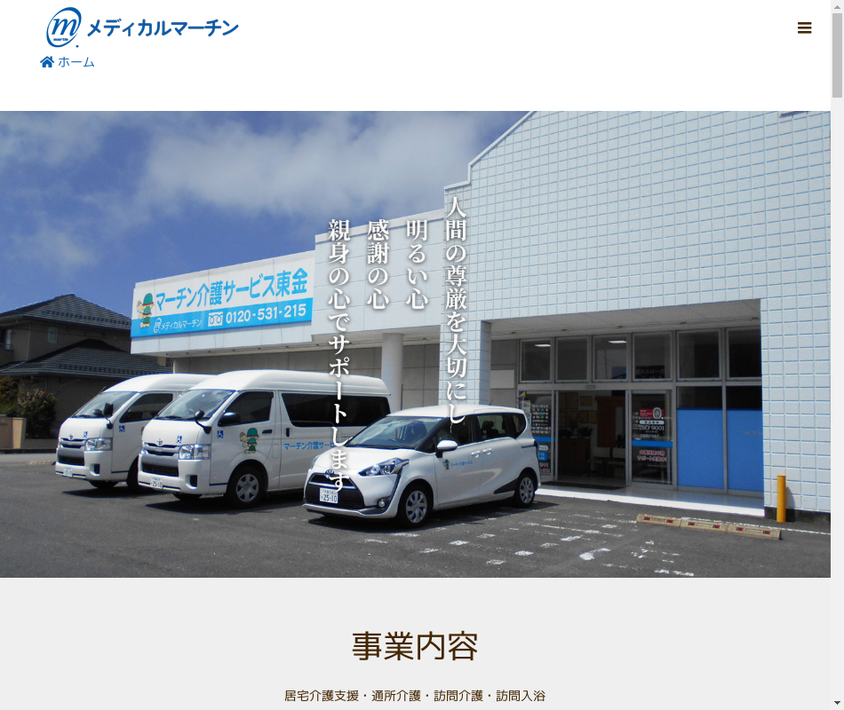 | 事業内容 | 訪問介護事業・通所介護事業(デイサービス・居宅介護支援事業・有償ケア輸送サービス・福祉タクシー事業・身体障害者支援事業)・定期巡回随時対応型訪問介護看護・住宅型有料老人ホーム |