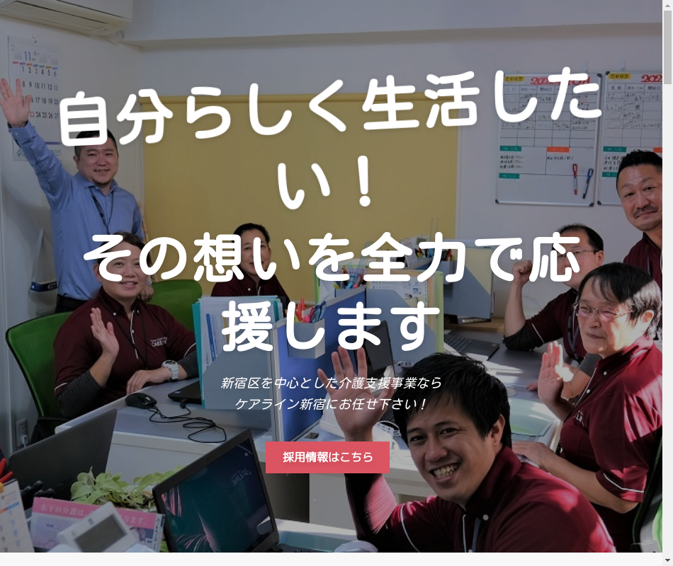 | 事業内容 | 介護保険、障害者総合支援制度による訪問介護、居宅介護支援事業新宿区受託事業、自費による訪問介護、高齢者居場所づくり事業 |