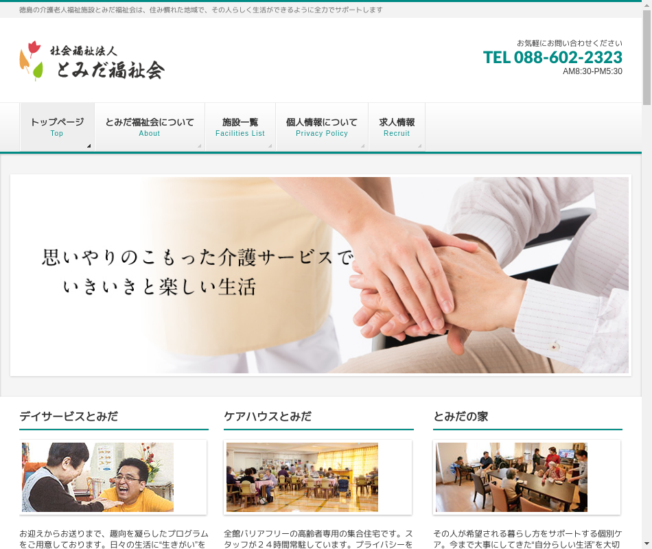 | 事業内容 | 医療業務(内科・外科・泌尿器科・リハビリテーション科)。福祉業務(通所介護 通所リハビリテーション・痴呆対応共同生活介護・居宅介護支援事業所) |