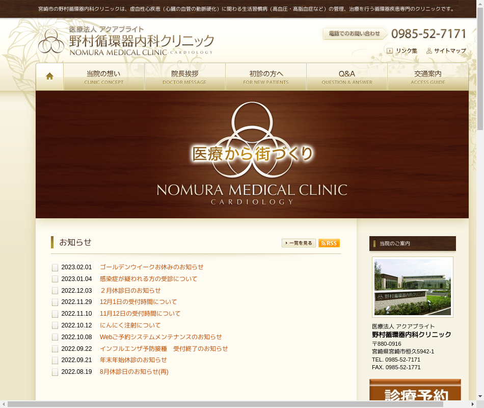 | 事業内容 | 無床診療所(主に循環器疾患)健康に関する様々な分野の情報提供及び活動 |