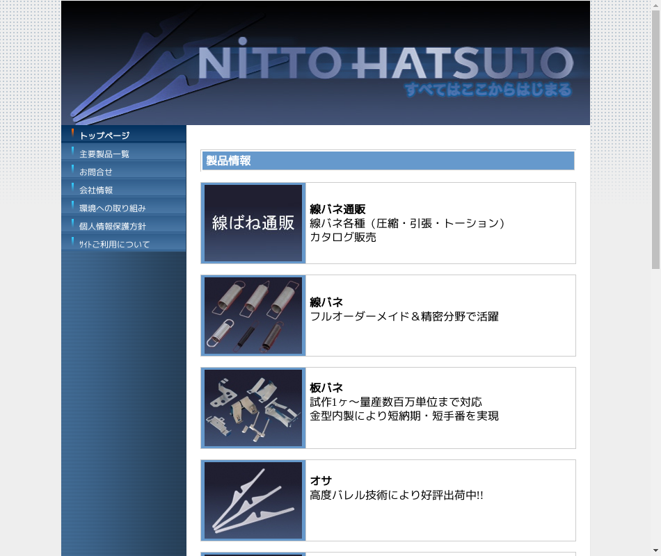 | 事業内容 | 各種金属製品加工業(コイルバネ、板バネ、切削物、金型、各種プレス製品等) |