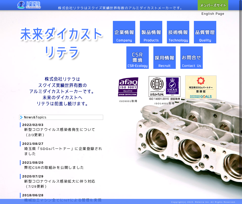 | 事業内容 | アルミダイカストによる自動車部品(エンジン・ブレーキ・油圧機器・足回り部品等)及び建設機器関連の油圧部品の製造 |