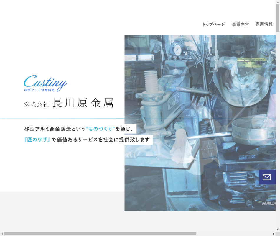 | 事業内容 | 非鉄金属鋳造業、溶接板金加工業アルミニウム合金及び銅合金を主体に工作機械、産業機械の部品やトンネル銘板や橋銘板、車止め、外壁等の鋳造品を製作しています |