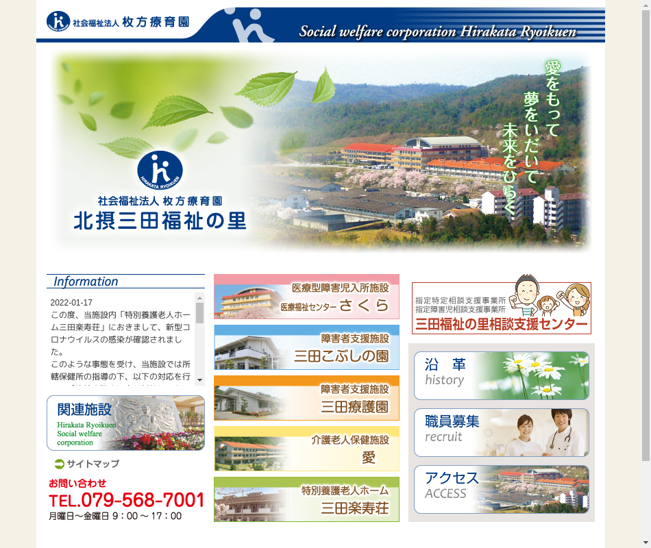| 事業内容 | 障害者支援施設「三田療護園」、特別養護老人ホ-ム「三田楽寿荘」、障害者支援施設「三田こぶしの園」、医療型障害児入所施設「医療福祉センターさくら」、介護老人保健施設「愛」の運営 |