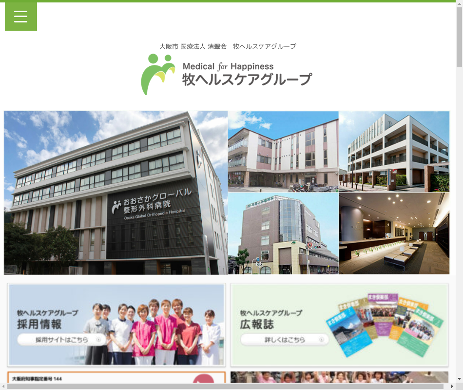 事業内容 | 病院・リハビリ病院・老人保健施設・訪問看護ステーション・訪問介護・福祉用具貸与・居宅介護支援・グループホーム・通所介護・通所リハ・地域包括支援センター・健康増進施設 |