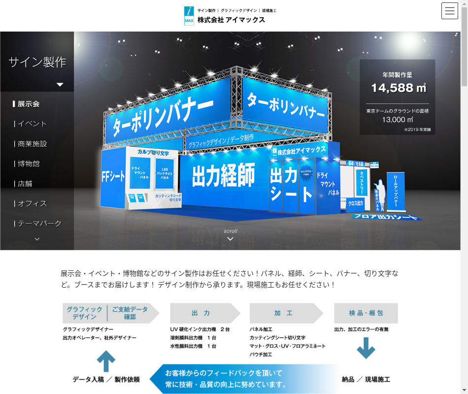 | 事業内容 | 展示会・イベント関連のサイン、グラフィック製作・出力・加工・現場施工 |