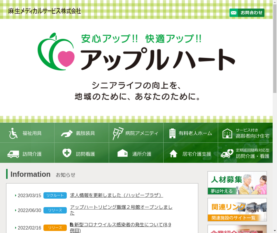 | 事業内容 | 福祉用具販売・レンタル住宅改修・義肢装具の製造販売・ケアプランセンター・訪問看護・訪問介護・通所介護・有料老人ホーム・サービス付き高齢者向け住宅 |