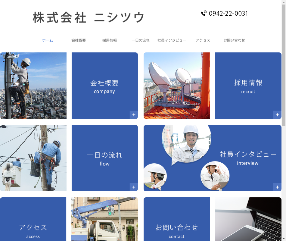 | 事業内容 | 屋内通信工事・屋外通信工事、電気通信工事全般の工事会社 携帯電話基地局の新設・整備・撤去工事、及び点検・調査・設計の業務、アンテナ・送受信装置・ケーブル等の配線工事 |