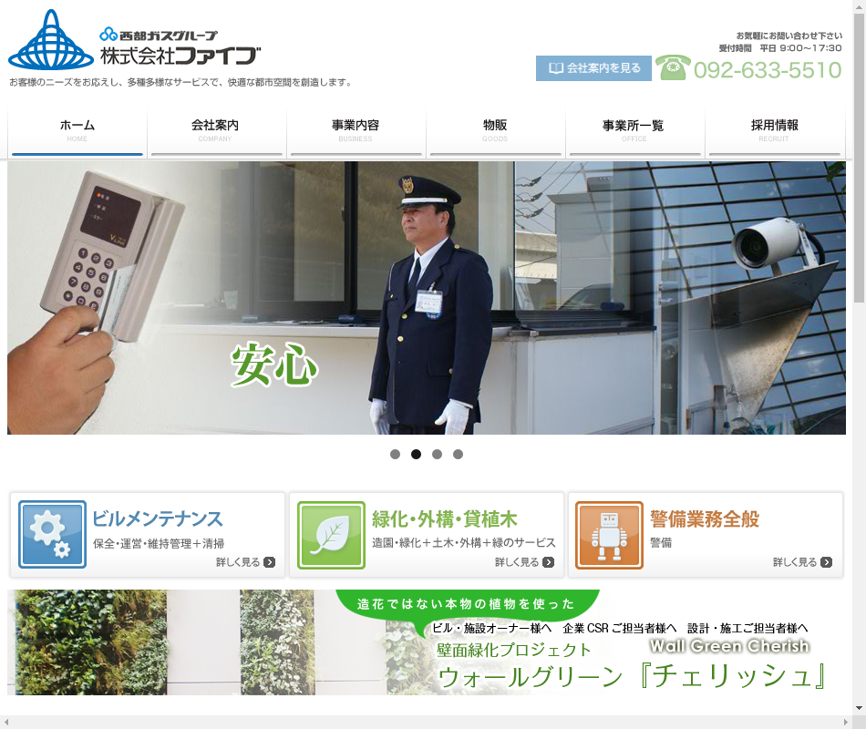 | 事業内容 | 西部ガスグループ ビルメンテナンス・緑化建設・警備 西部ガスグループの不動産物件メンテナンスが 90%以上 |