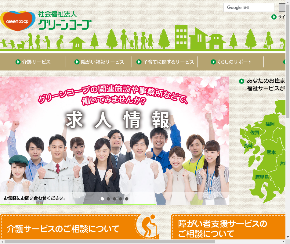 訪問介護事業、通所介護事業、小規模多機能型居宅介護事業、グループホーム、居宅介護支援事業、認可保育園、無料低額宿泊施設