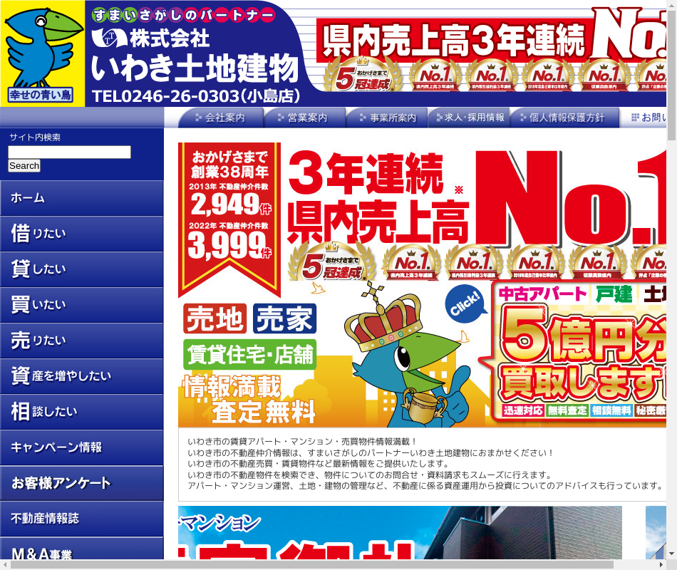 | 事業内容 | いわき駅周辺に不動産を所有し、商業テナント及び駐車場の賃貸、管理、運営をしています。また、いわき駅周辺の開発事業を行っています。 02 |