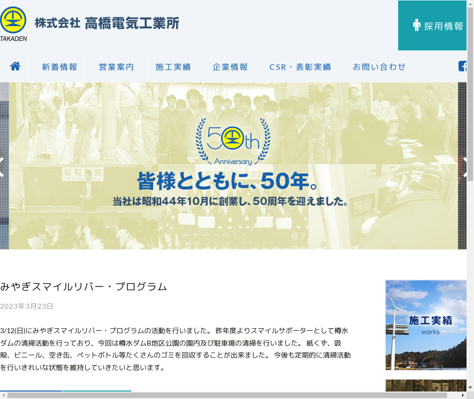 | 事業内容 | 電気工事業、消防施設工事業(中退金・建退共の双方加入) |