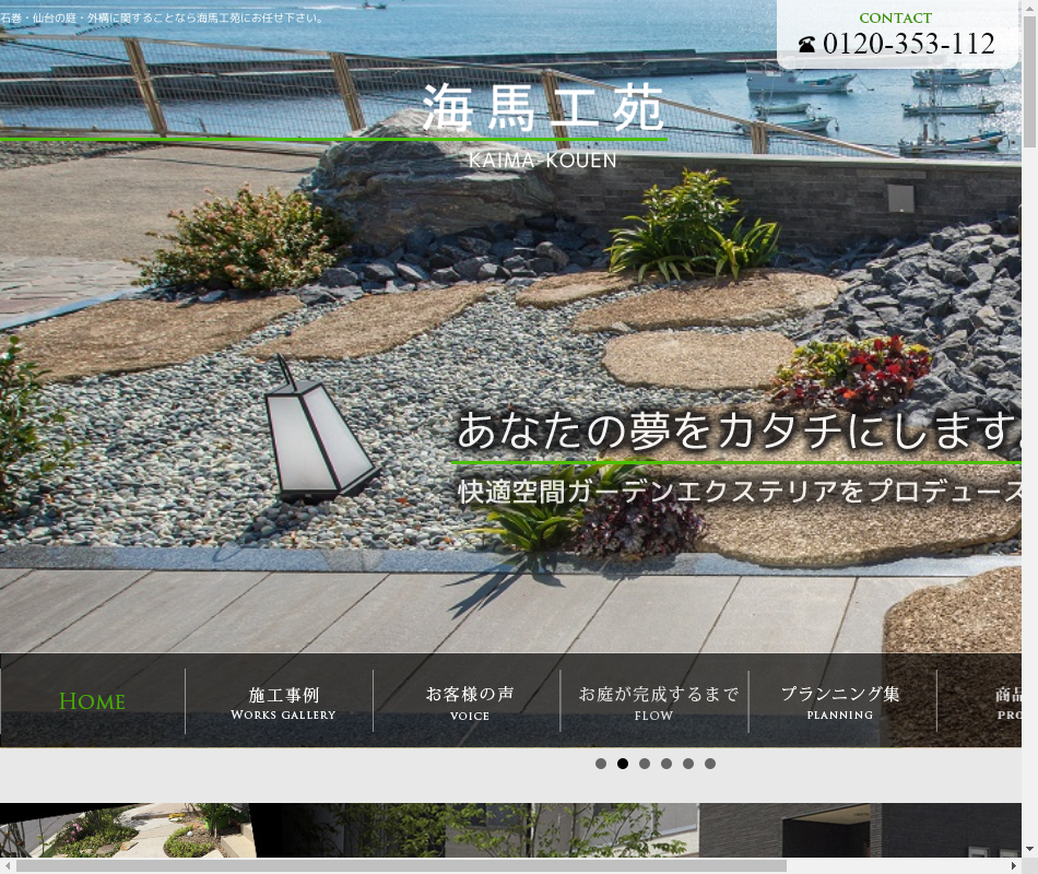 | 事業内容 | 外構エクステリア・造園工事の分野において、県内有数の創作力と施工件数を誇ります。「お庭」を通じて自然の造形を生活に投影させ建物と自然空間の調和というライフスタイルを創出します。 |