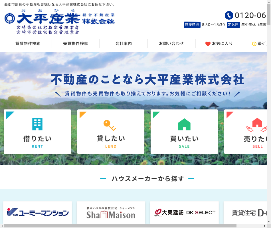 | 事業内容 | 総合不動産業・売買・賃貸仲介、アパート管理、リフォーム。土地・新築・中古住宅の売買仲介、アパート・マンション・貸家・貸店舗・事務所の賃貸仲介、賃貸物件の管理業務(家主代行)。 |