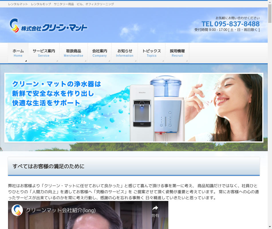 | 事業内容 | 環境美化商品(空気清浄機、浄水機、芳香器、消臭器、化学マット、モップ等)の企業向レンタル及びコンサルティング販売 ビルメンテナンス、ホテルベッドメイク事業 |