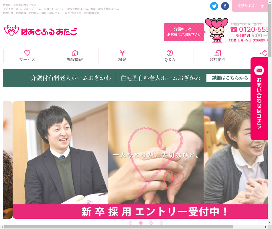 事業内容 | ■介護サービス事業(居宅介護支援、福祉用具貸与・販売、訪問介護、ショートステイ、デイサービス、グループホーム、小規模多機能ホーム) ■介護保険外サービス(脳リハ・訪問鍼灸) |