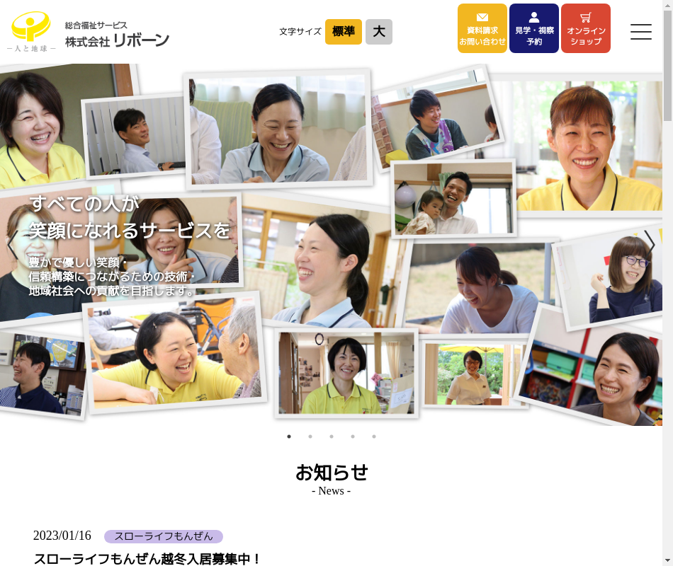 事業内容 | 総合福祉サービス業:看護・通所・短期入所介護・グループホーム・有料老人ホーム・ブライダル事業・福祉用具販売・保育園・介護研修センター・高齢者住宅・飲食店運営・障がい者療育運動施設 |