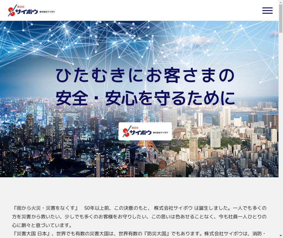 | 事業内容 | 1消防防災用設備・弱電設備・設計施工2消防防災用設備の販売・卸3消防防災用設備の定期点検・整備 【大宮地区雇対協会員企業】 |
