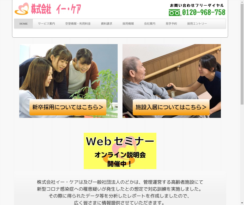 事業内容 | 高齢者施設・介護保険事業所の運営(有料老人ホーム・グループホーム・通所介護、訪問介護事業所、居宅介護支援事業所、福祉用具貸与事業) |