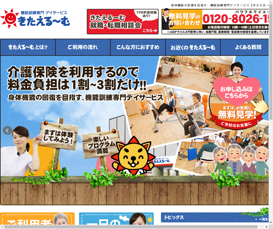 | 事業内容 | 介護保険法に基づく短時間制の機能訓練専門デイサービス。パワーリハビリや歩行訓練に加え、マッサージやストレッチを提供。今後も全国に展開していく予定です。 |