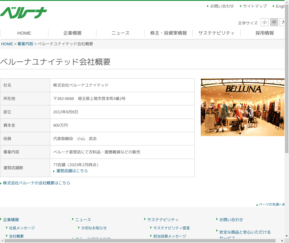 | 事業内容 | 総合通信販売ベルーナの直営店にて、衣料品、服飾雑貨の販売をいたしております。 |