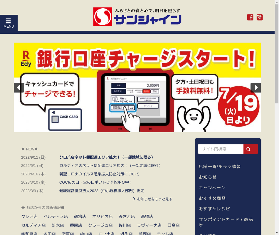 | 事業内容 | 生鮮食品スーパー「サンシャイン」の本部として、直営16店舗の運営、チェーン店の経営指導、共同企画・仕入れ・物流を行う。チェーン店を含め、高知・愛媛・徳島で29店舗を出店。 |