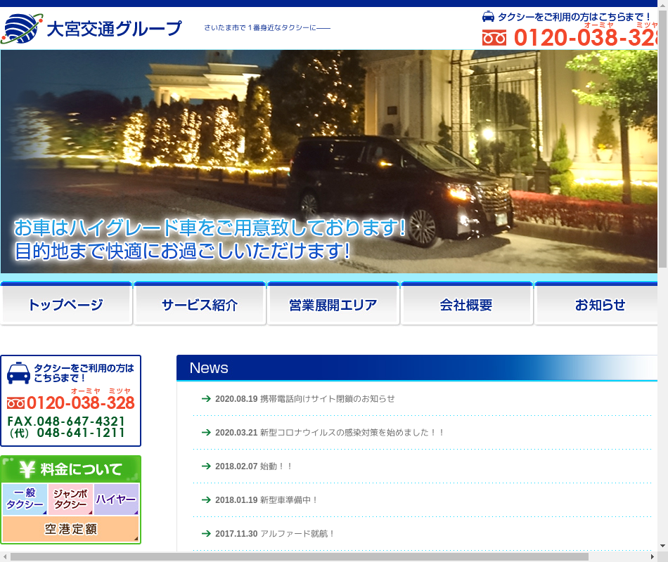 | 事業内容 | タクシー、ワゴンタクシー、福祉タクシー、バスを所有し、契約会社様の送迎、冠婚葬祭、旅行等の業務を行っています。又タクシーは電話配車、東松山、高坂、森林公園各駅に待機しています |