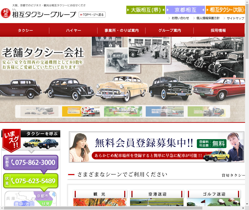 事業内容 | 道路旅客運送業他。1タクシービジネス。相互タクシー株式会社(大阪本社他5営業所)、大阪相互タクシー、京都相互タクシー。2観光事業 3交通共済事業 4不動産事業 |