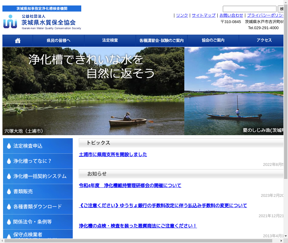 | 事業内容 | 浄化槽の工事及び維持管理に関する指導浄化槽の機能保証 浄化槽に関する調査及び研究 浄化槽の法定検査 |