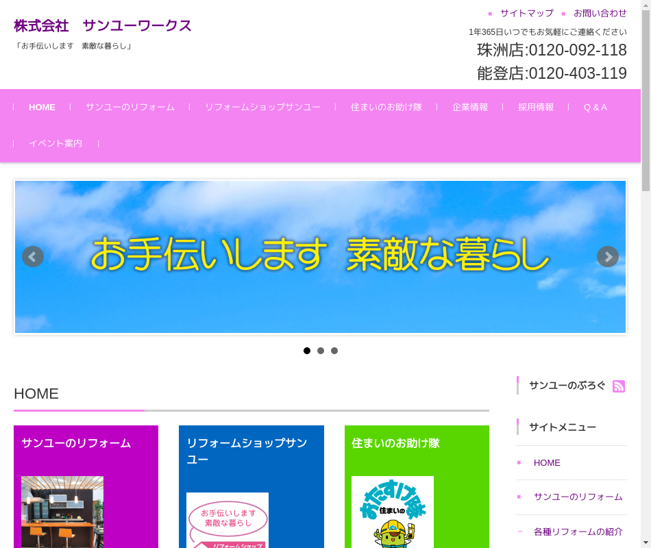 | 事業内容 | ○各種住宅リフォーム・ハウスメンテナンス(住まいの各種修理・修繕)○ライフサポート(ハウスクリーニング、他各種代行サービス)○家電製品販売 |