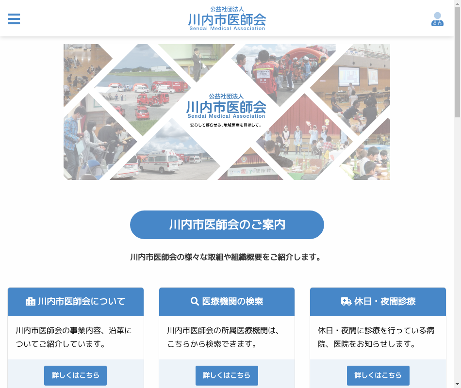 | 事業内容 | 医師会事務局、看護専門学校、訪問看護ステーション、居宅介護支援事業所、在宅医療支援センター、北薩地域産業保健センター |