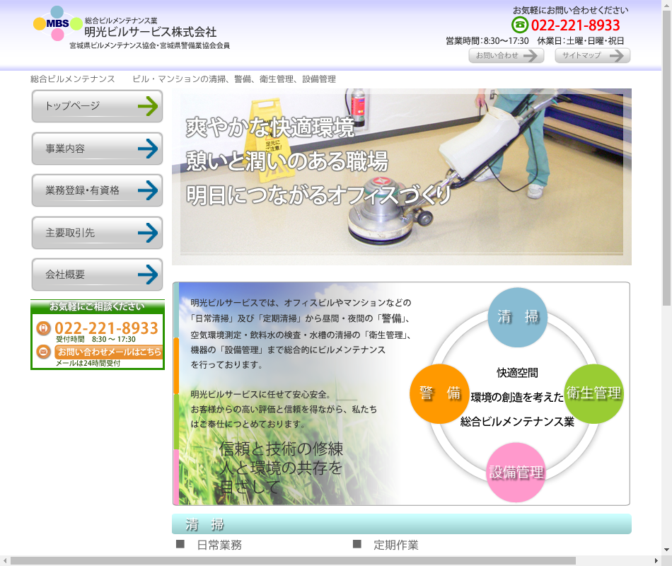 | 事業内容 | 総合ビル管理(清掃管理・警備保安管理・環境衛生管理・設備管理) |