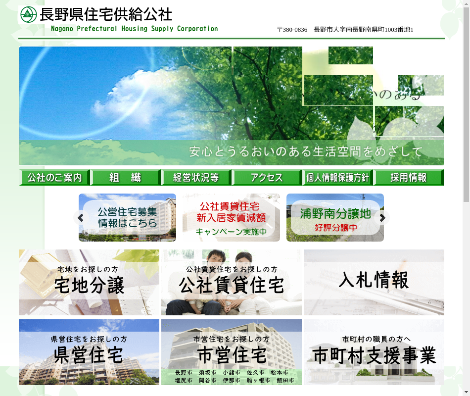 | 事業内容 | 分譲住宅及び宅地の分譲 公社賃貸住宅及び公営住宅等の管理 市街地整備事業及び市町村支援事業 |