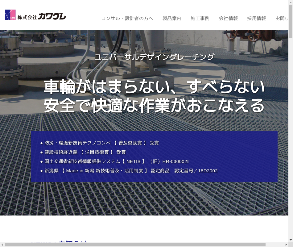 | 事業内容 | ○グレーチング・建築用レールの製造販売当社は姉妹会社である株式会社カワグレの製品製造を行っております。 |
