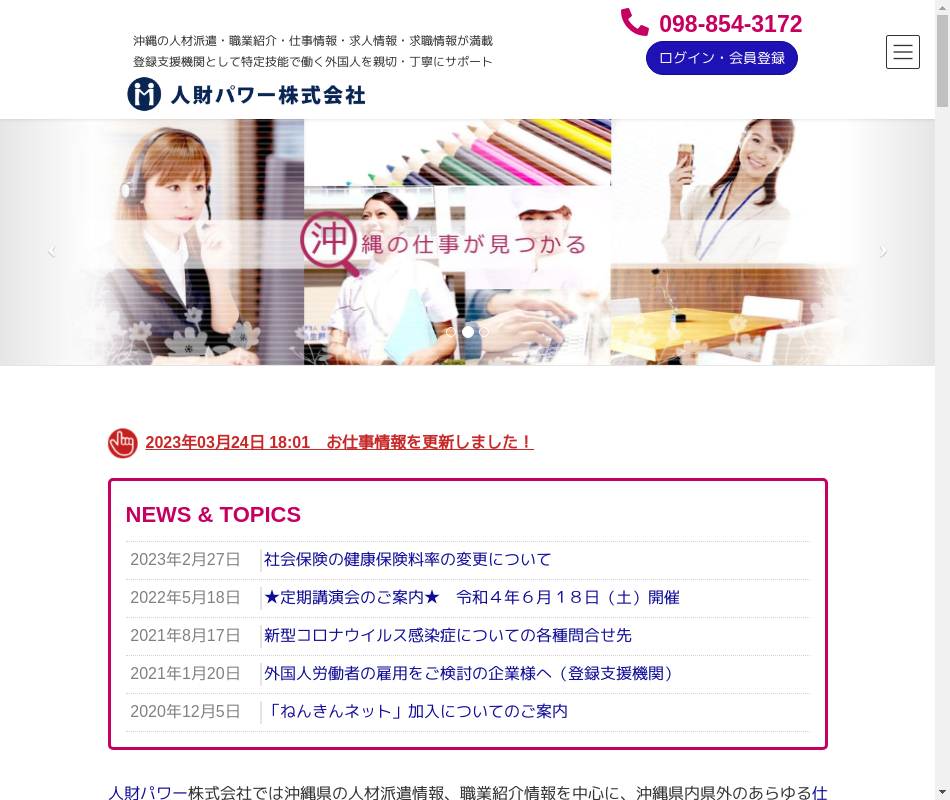 ・労働者派遣事業 派47-010002 ・有料職業紹介事業 47-ユ-010018