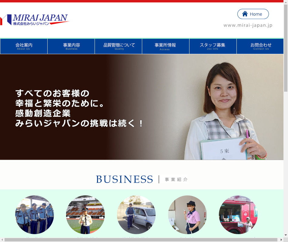 | 事業内容 | 保安警備業(常駐警備、機械警備 交通誘導警備)ビルメンテナンス業。 労働者派遣事業(派35-300206)H21年8月社名変更 |