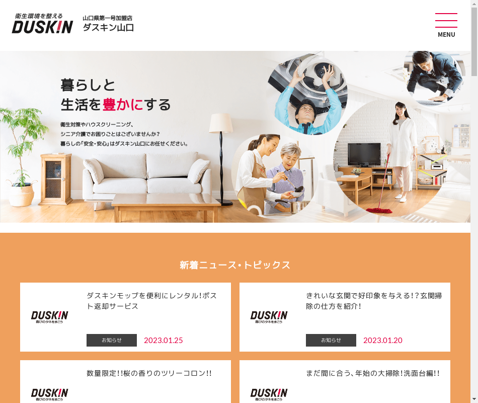 | 事業内容 | ダスキン商品の販売、レンタル業。ダスキンのフードサービス業(ミスタードーナツ)高齢者を対象とした介護保険を使わない新サービス。ビルメンテナンス業務。清掃。 |