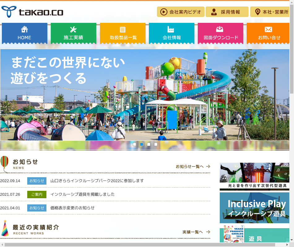 行っています。製品はすべり台・ブランコ・鉄棒や複合遊具等及び