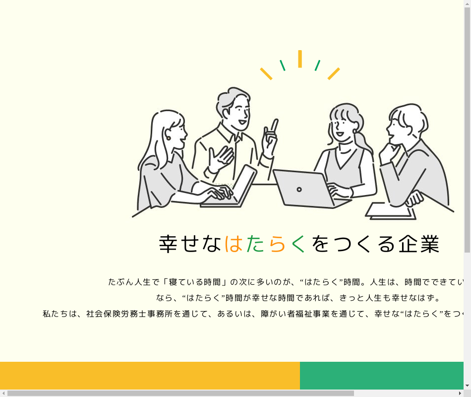 事業内容 | 介護福祉業界向けに“人間力向上研修”等を行っている会社。2022年12月より就労継続支援B型事業所もオープン。笑顔で自分らしく社会貢献できる、“人間力”の高い職場を目指しています! |