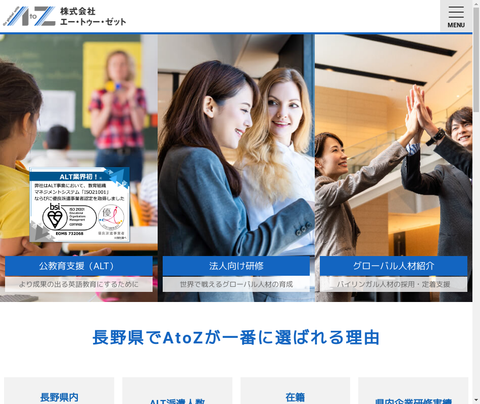 教室運営。公教育への外国語指導助手(ALT)派遣、法人向け語
